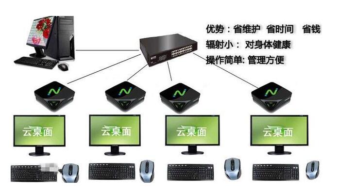 桌面云一般是由瘦客户机或(云终端、网络终端机)等跟服务器组成,而每一个用户只需要通过瘦客户机上插入显示器,键盘鼠标,接入网线便可以连接服务器,桌面是跟服务器一样的,而且瘦客户机上面不做存储,你所操作的只是服务器上面虚拟的桌面,因此这样对数据的安全性更加高,而且瘦客户机的维护、运用、投入成本远远低于普通PC的价格,因此很多大型公司或单位都开始慢慢的投入桌面云,桌面云一般运用在单位、图书馆、公司、培训机构等,运用的比较广,而且不一定要在局域网,在广域网一样可以进入桌面云。