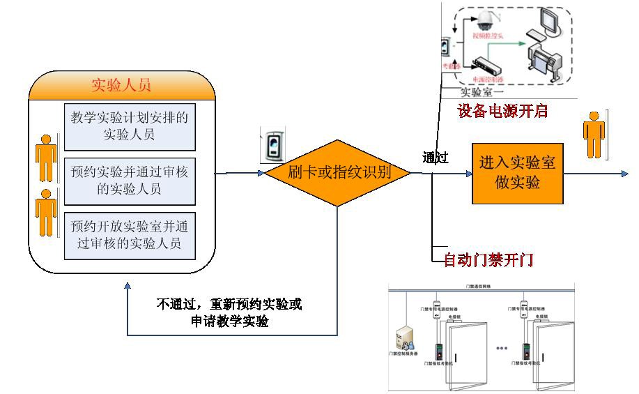 智慧实验室,实验门禁系统,校园卡,刷卡或指纹识别,智慧校园智慧实验室门禁管理系统教学管理融合物联网前沿技术,学生通过教学实验安排、开放实验预约、创新实验室预约后,刷卡或指纹识别进入实验室,门禁设置采用“进门刷卡,出门按钮开门”的方式,整个门禁系统由控制室统一...